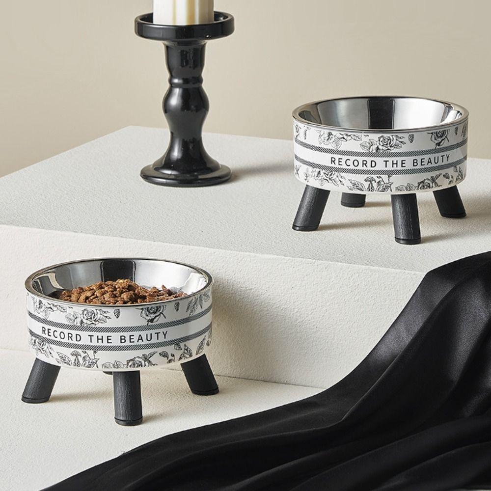 صحن طعام ستانلس ستيل مرتفع للحيوانات الاليفة 300 مل