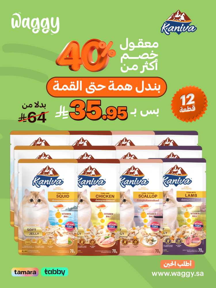 مع باندل همة حتى القمة من واجي، لا تحصل فقط على تشكيلة غنية بالنكهات الصحية من كانفيا، بل أيضًا على راحة البال مع وجبات متوازنة مناسبة لجميع أعمار القطط، هذا الباندل يجمع بين الجودة، التنوع، والسعر الاقتصادي في منتج واحد، استمتع بخصم أكثر من 40% ووفّر لقطة المنزل أفضل تجربة غذائية يومية، اطلب الآن من واجي وامنح صديقك الفروي التغذية التي يستحقها.