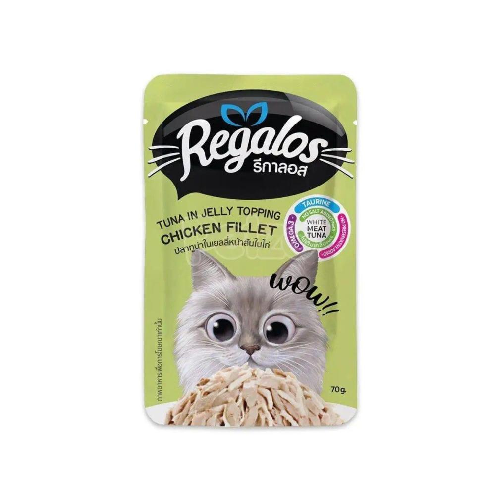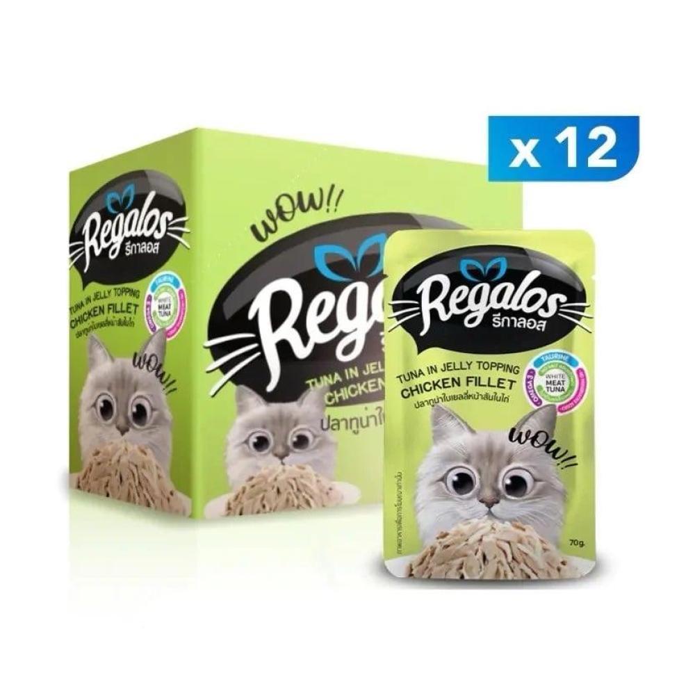 كارتون ريقالوس طعام رطب للقطط البالغة بطعم بالتونا والدجاج في الجيلي 12 ظرف