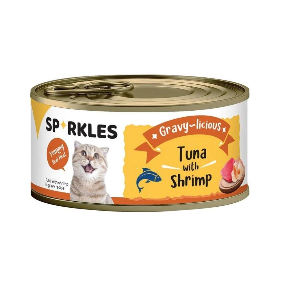 امنح قطتك تجربة طعام فاخرة ولحظة من السعادة مع سباركلز معلبات للقطط البالغة بالتونا والجمبري،