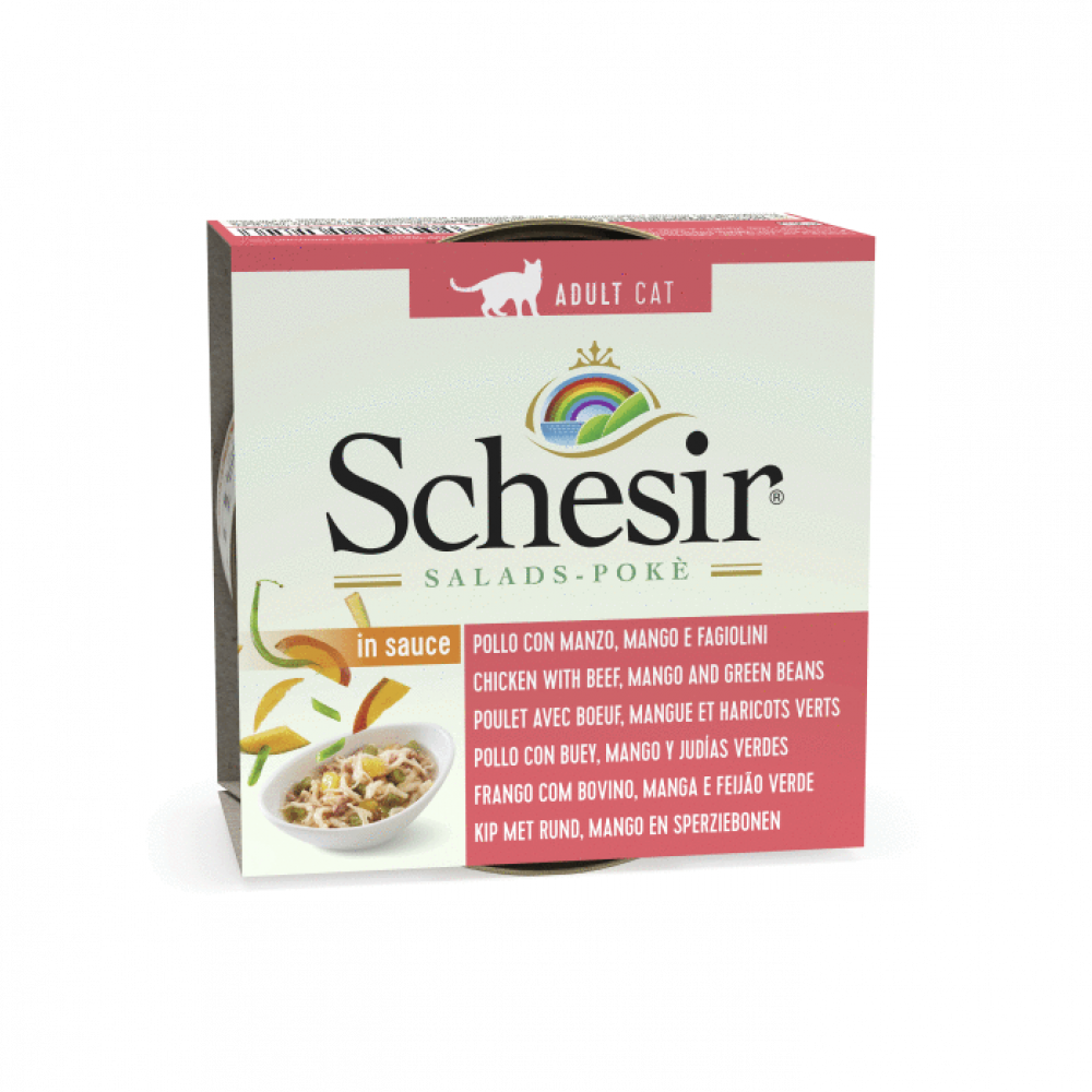 سلطة شيزر للقطط المعقمة بالصلصه والدجاج واللحم بقري مع المانجو والفاصوليا