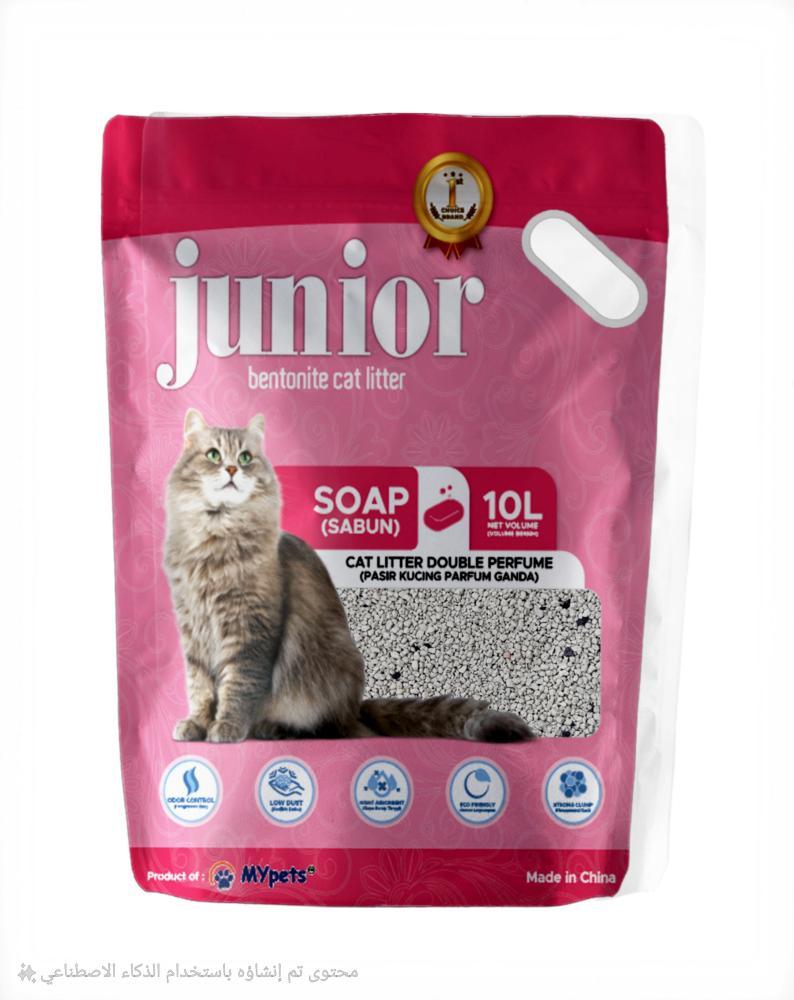 احصل على رمل قطط جونيور برائحة الصابون 10 لتر الآن من متجر واجي أفضل متجر مستلزمات القطط ومتجر للحيوانات الأليفة لتوفير صندوق نظيف ومنتعش لقطتك بسهولة وسرعة.