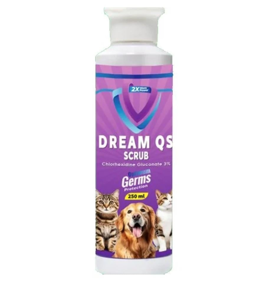 شامبو للفطريات للقطط والكلاب دريم كيو اس 250 ملل مناسب لدعم العناية بالجلد، ويساعد على تنظيف الفراء مع مراعاة الحالات التي تتطلب اهتمامًا خاصًا.