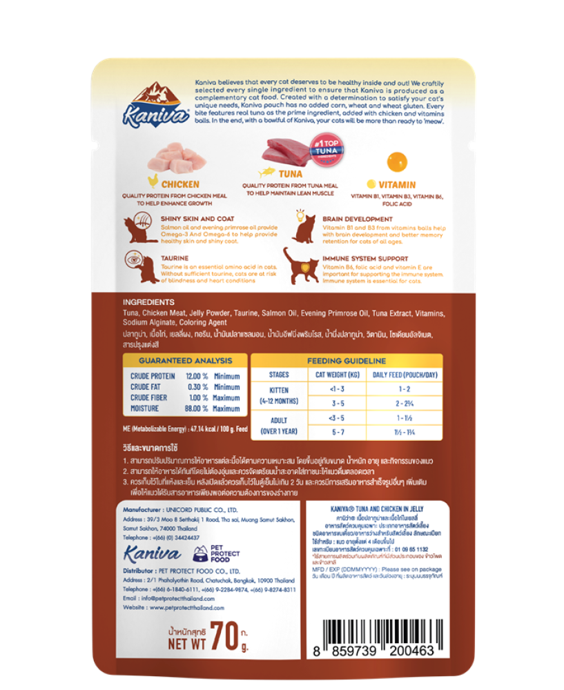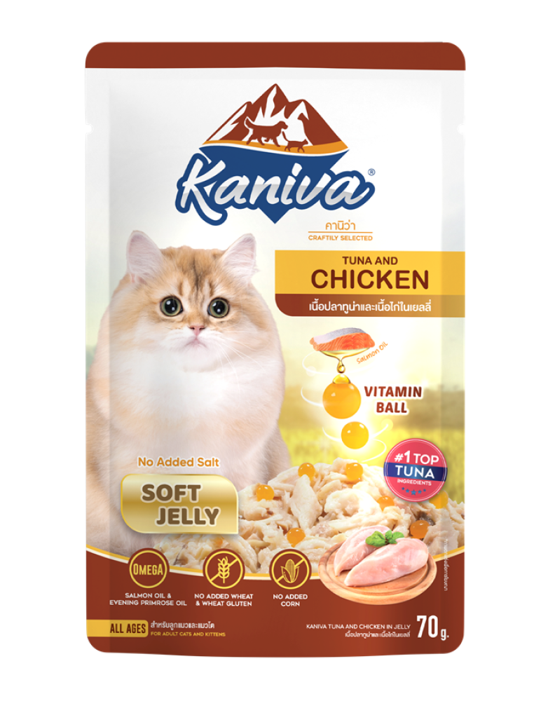 يقدم لك كانيفا اكل قطط رطب توليفة شهية من التونة الطازجة مع الدجاج الطري في جيلي ناعم، ليمنح قطك تجربة غذائية متوازنة ولذيذة في كل وجبة. تم تطوير تركيبة Kaniva Wet Cat Food مع كرات الفيتامين والزيوت الطبيعية لتدعم صحة القطط من الداخل والخارج.
