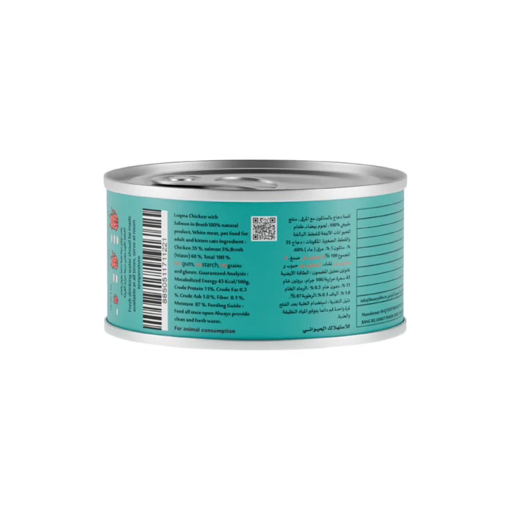كارتون لقمه طعام رطب للقطط الصغيرة والبالغة بالدجاج والسالمون في المرق 24 قطعة