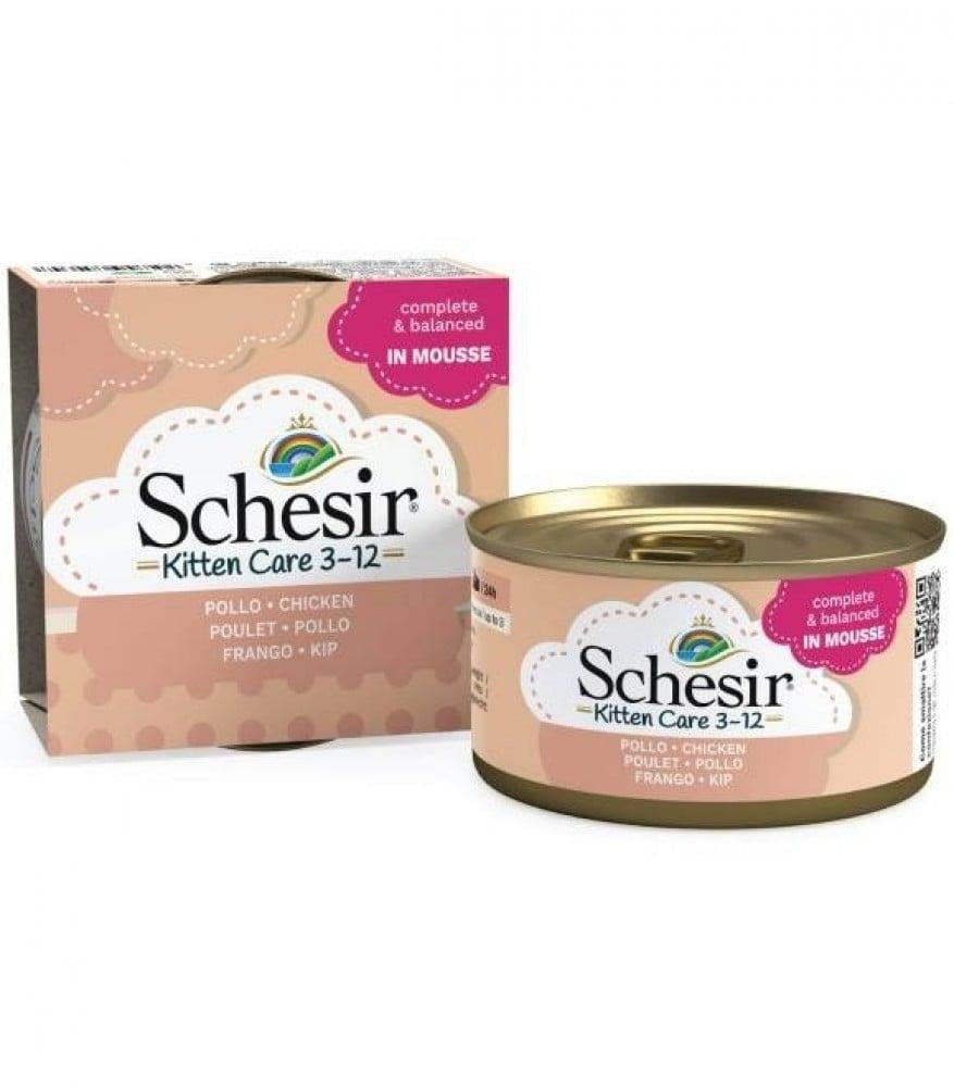 شيزر دجاج للكيتن schesir kitten طعام رطب للقطط الصغيرة 85 جم